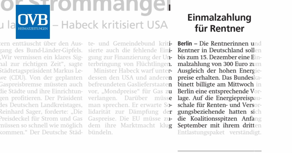 Das Modell sieht zum einen in diesem Jahr eine Einmalzahlung in Höhe einer Monatsrechnung vor zum anderen sind im kommenden Jahr. Bei einer Einmalzahlung wäre das ganz klar der Fall. Wichtig wird sein einen hohen Sparanreiz zu erhalten.